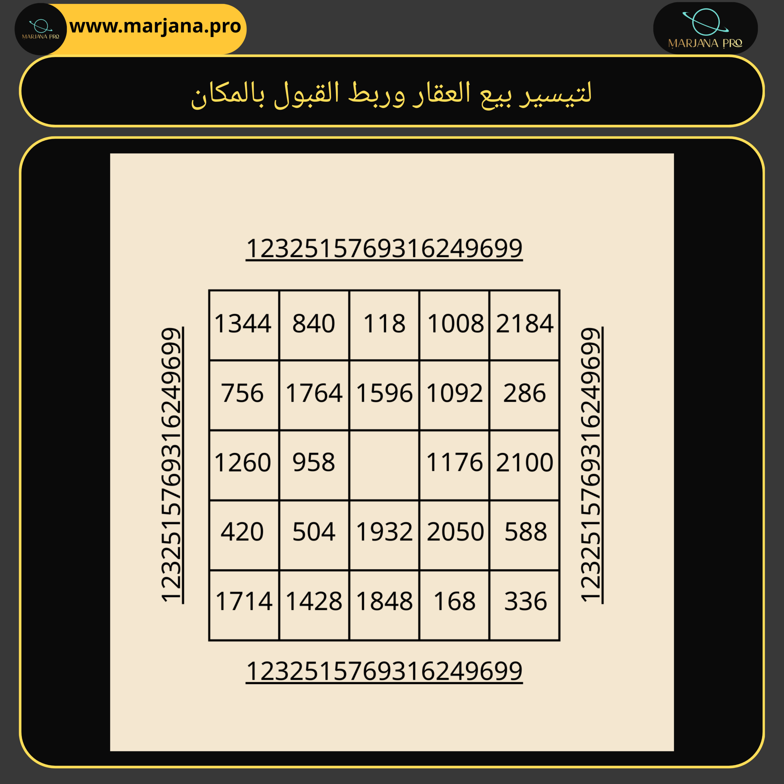 يُكتب في وسط الوفق اسم الشيء المراد بيعه، مثل: