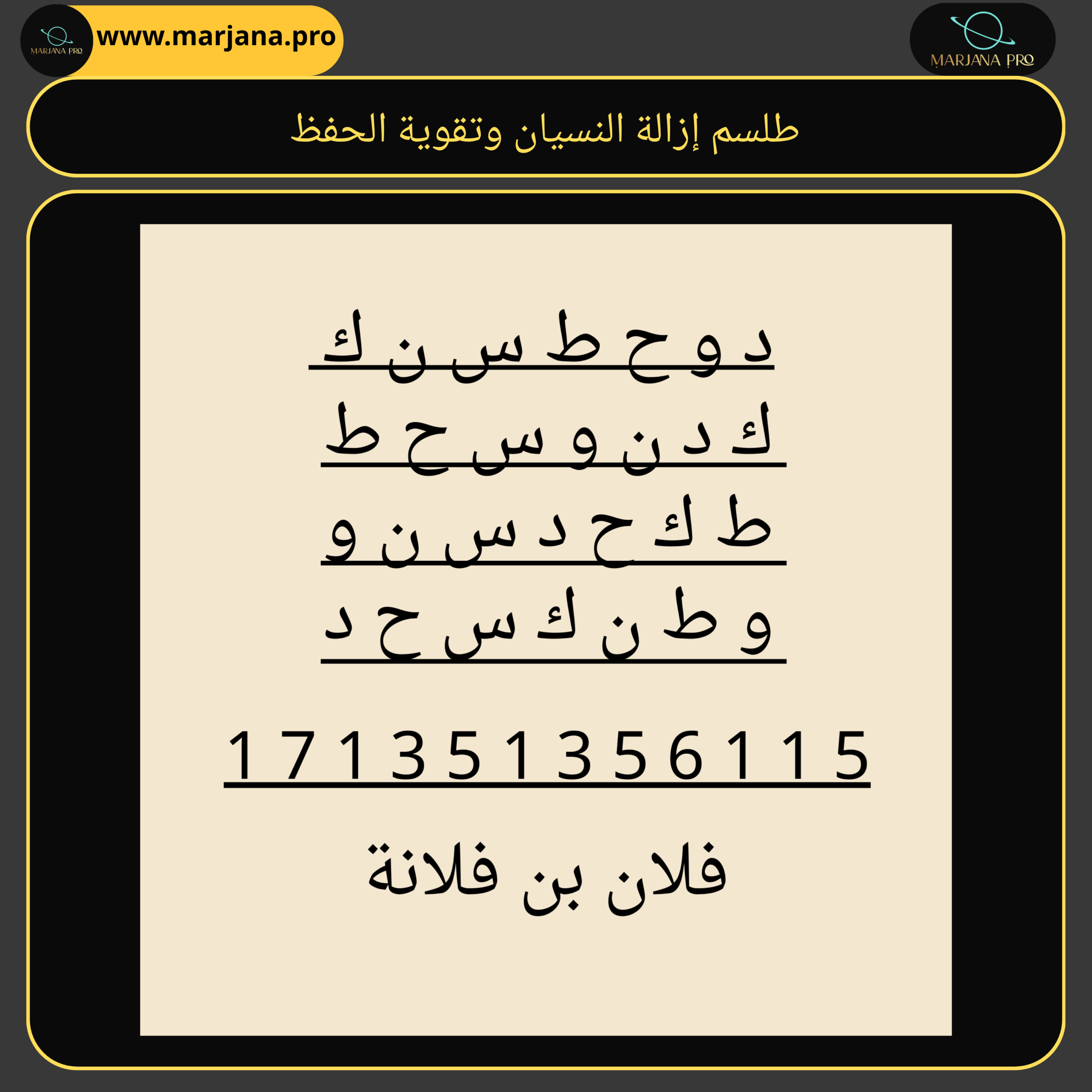 هذا المحتوى يُقدَّم بوصفه مادة تعليمية تراثية مستندة إلى علم الحروف وحساب الجُمَّل، ولا يُعد علاجًا طبيًا أو نفسيًا، ولا يُغني عن استشارة المختصين.