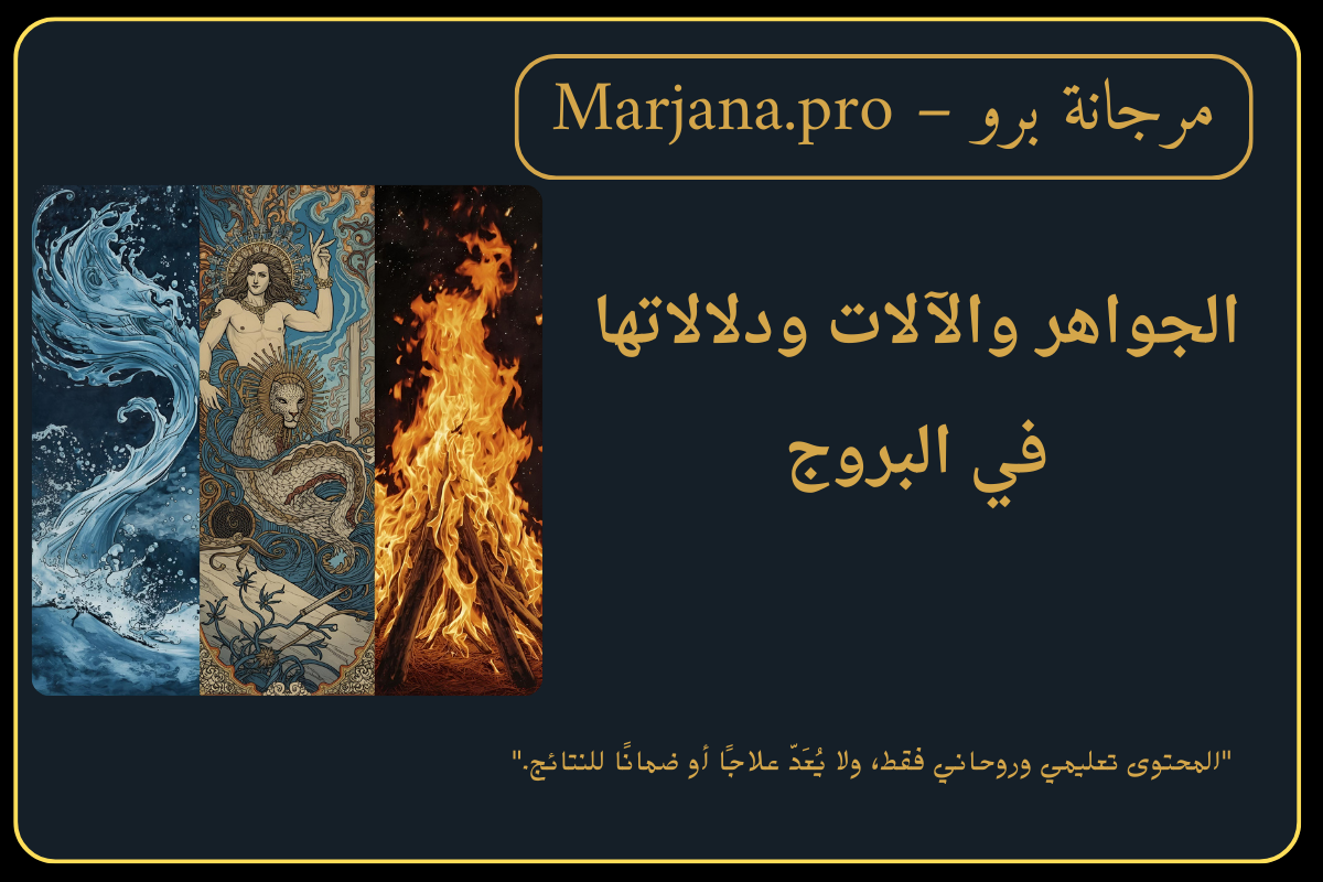 يرتبط كل برج بنوع من المعادن والجواهر والآلات، وذلك بحسب طبائعه وما يقابله من قوى النار والهواء وا...