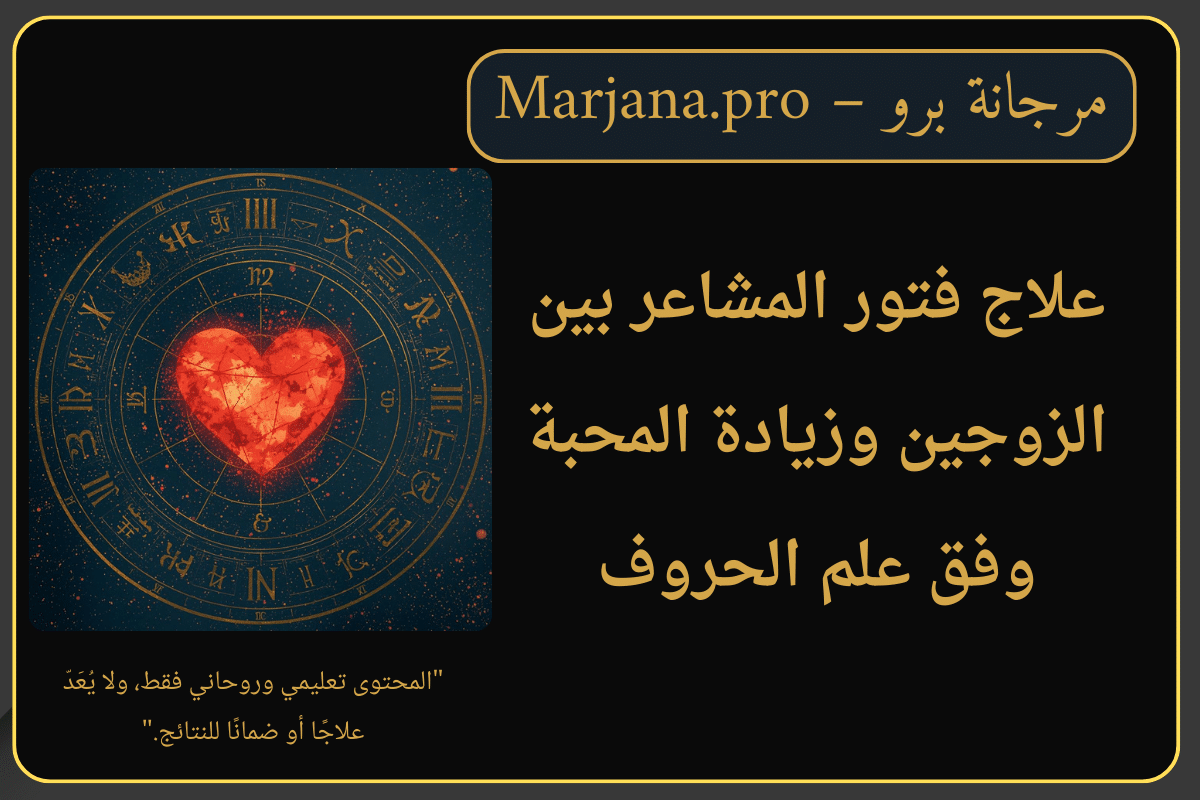 شرح تعليمي لظاهرة فتور المشاعر بين الزوجين، مع بيان أسباب ضعف المحبة وطريقة حرفية لإعادة الألفة والتوازن العاطفي وفق منهج علم الحروف، بأسلوب هادئ غير قهري.