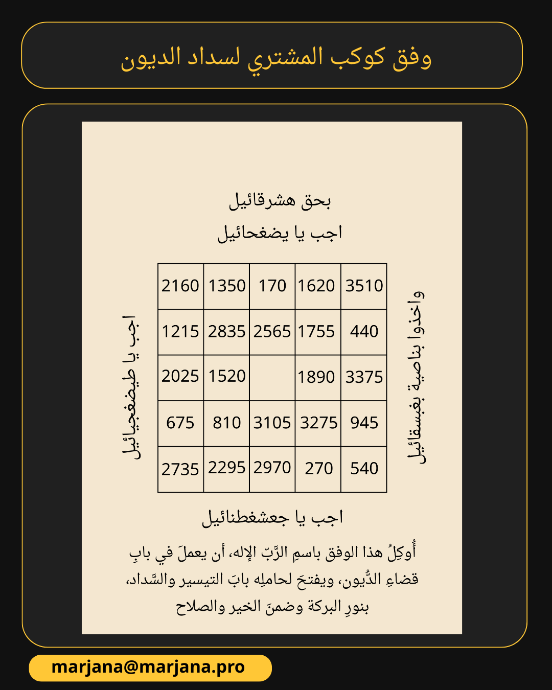 يُعَدّ “وفق سداد الدَّين” من الأعمال الروحانية التي اعتنى بها أهل الحرف والأوفاق لطلب التيسير ودفع ثِقَل الضيق المالي عن الإنسان. والغاية منه ليست مخالفة الأسباب المادية، بل دعمهـا بعملٍ رمزي يوافق طاقة الرفع والتحريك، على ما جرى عليه التقليد القديم في الجمع بين النية والعمل والعدد.