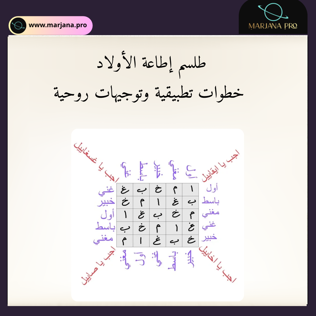 جميع الأعمال الروحانية المعروضة على موقع Marjana.pro تُقدَّم لأغراض ثقافية وروحية فقط، ولا تُعتبر بديلًا عن الاستشارة الطبية أو النفسية أو القانونية.
