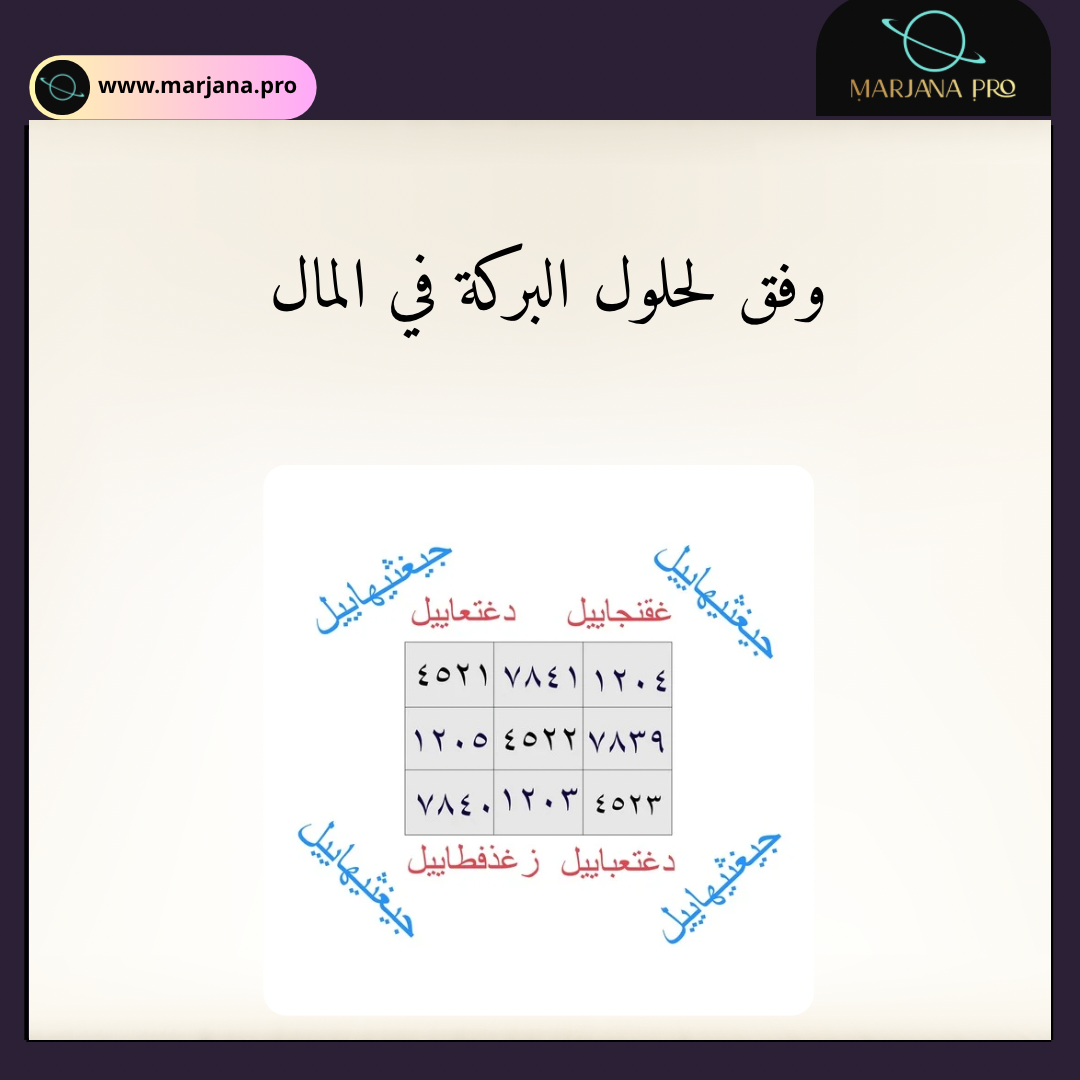 يُقدّم مركز مرجانة برو هذا العمل الروحاني الخاص والمجرّب لجلب البركة في المال، وزيادة الرزق، وتوسيع أبواب العطاء. وهو من الأوفاق النورانية التي تُنشّط الطاقة المادية وتعيد التوازن بين السعي والعمل والقبول، فينعكس أثرها على حياة حاملها باليسر والبركة.